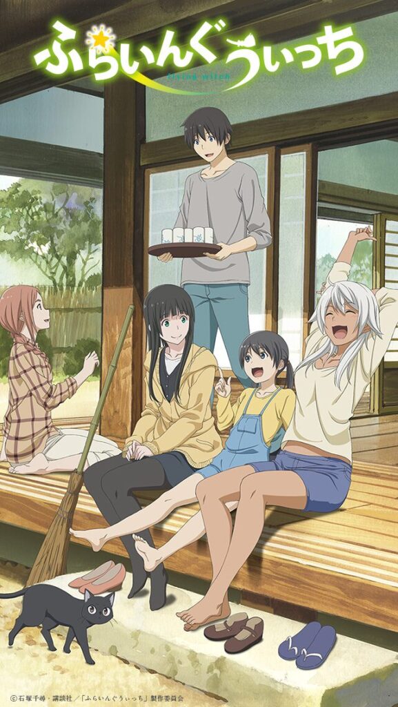 青森アニメの定番として、まず外せないのが『ふらいんぐうぃっち』です。見習い魔女の木幡真琴が、青森の親戚の家で暮らしながら、少し不思議で穏やかな毎日を送る物語です。主な声優は、木幡真琴役が篠田みなみさん、倉本千夏役が鈴木絵理さん、石渡なお役が三上枝織さんです。弘前市は公式に「ふらいんぐうぃっち」舞台めぐりを案内しており、作品と街の結びつきが非常に強いです。