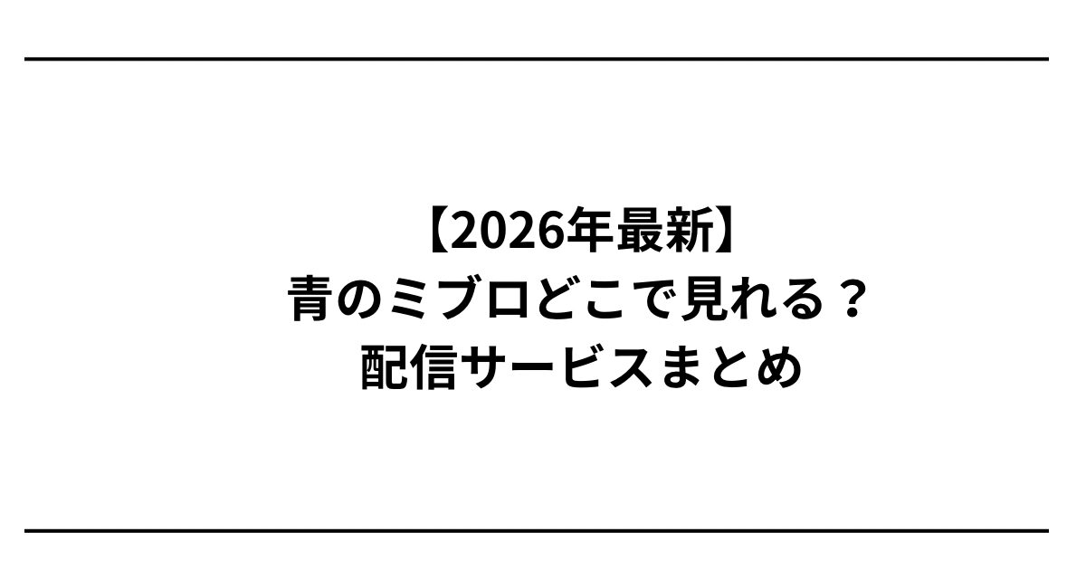 「青のミブロ どこで見れる?」「青のミブロ 配信はどのサービスで見られるの?」と気になっている人向けに、2026年最新の配信情報をわかりやすくまとめました。